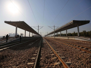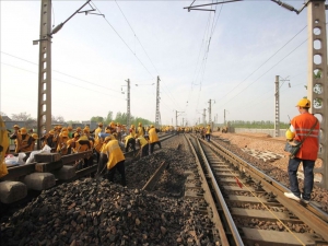 防爬器是由带挡板的轨卡穿销组成。安装时,轨卡一边卡紧轨底,另一边楔进穿销,使得整...